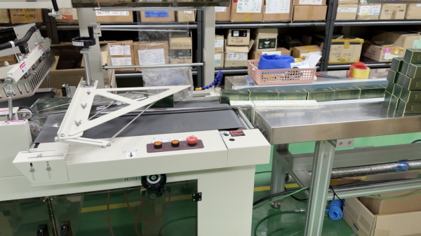 전자동수축포장기, 자동수축포장기는 제품이 공급되는 자동컨베어, 공급기와 연동하면 자동으로 수축포장 작업이 가능한데요