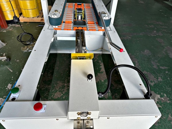 박스를 밀어주는 푸쉬(Push) 작동은 초록색 스위치나 테이핑기 사이드에 달려있는 풋스위치로 가능하며