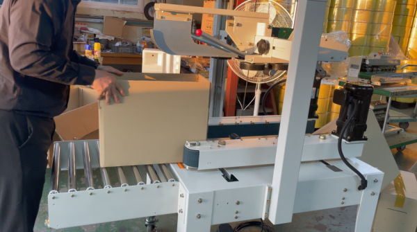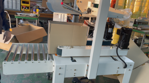 사이드벨트를 따라 박스가 이동하면서 테이핑이 됩니다