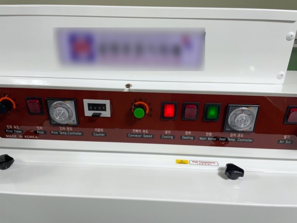 실링, 날인의 온도조절 및 컨베어속도 동을 세밀하게 조정할수 있으며 작업수량을 확인할수 있는 카운터, 비상스위치가 달려있습니다.