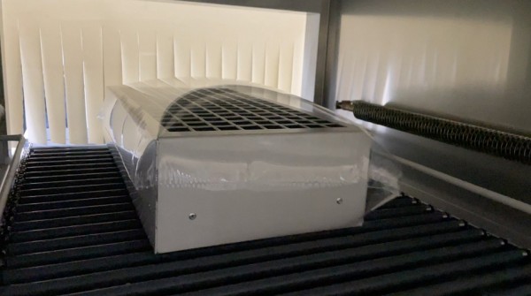 수축필름에 쌓인 제품은 수축터널을 지나면서 열수축과정이 진행되는데요