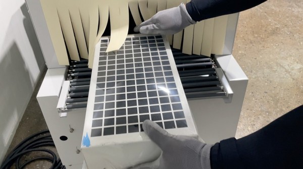 작업자가 제품을 수축필름의 사이에 넣어주고 엘실러를 작동시키면