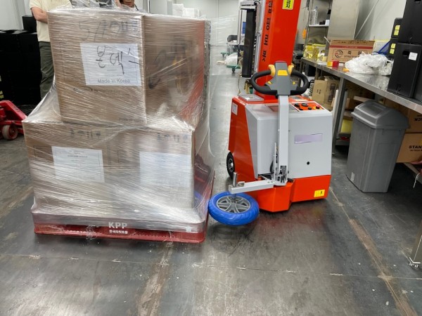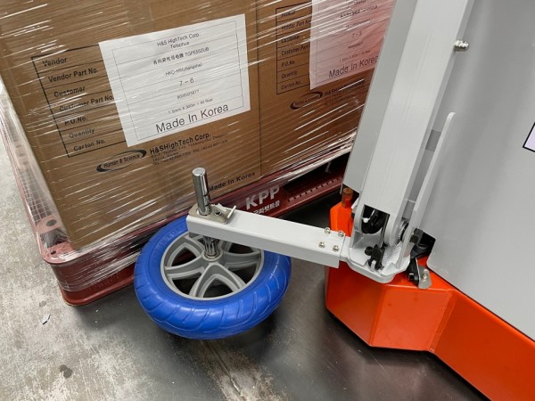 핸드카트처럼 자유롭에 기동이 가능한 랩핑로봇은 파렛트까지 이동시켜서 작동시키면 자동으로 파렛트 주위를 돌며 랩포장을 해주는 자동랩핑기입니다.