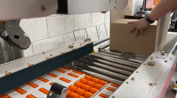 일반적인 반자동탭핑기가 박스의 크기별로 투입하고 높이, 폭을 조절하는것과 달리 다양한 크기의 박스를 랜덤으로 투입할수 있는