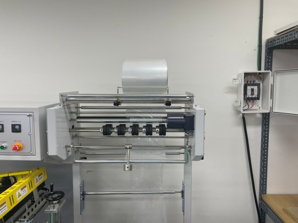 제품의 종류에 따라 크기가 다른 수축필름을 사용할수 있고, 필름컷팅후 남는 여분의 수축필름도 깔끔하게 처리가 가능한 전자동수축포장기의 엘실러입니다