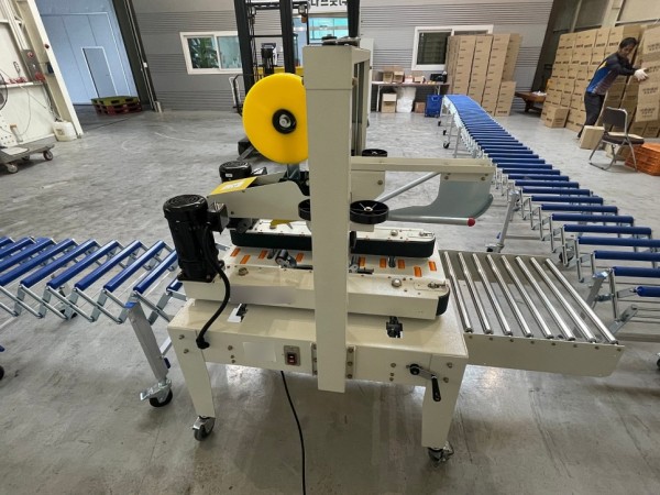 반자동으로 높이, 폭을 조절해서 여러종류의 박스를 상하 동시 테이핑할수가 있고