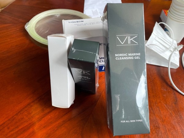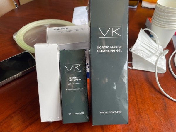 수축포장이 된 화장품, 화장품뿐아니라 각종 박스, 용기의 수축포장, 비닐포장에 수축포장기를 사용할수 있습니다.