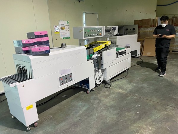전자동수축포장기계 외에도 수축터널(전자동에 들어가는 자동수축터널)을 추가로 납품했는데요