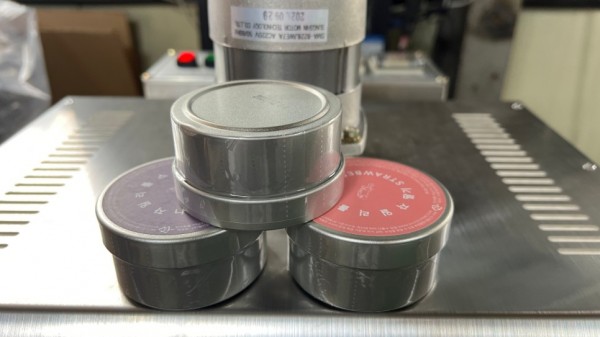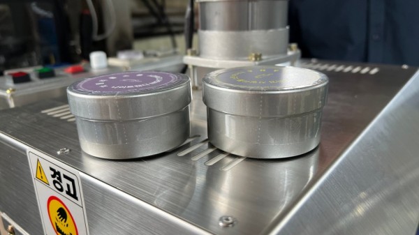 캔디, 사탕이 담긴 용기의 상단 뚜껑에 수축필름을 씌우고 수축포장을 해주면 용기 상단부분과 뚜껑, 본체를 감싸며 수축포장을 해주게 됩니다.