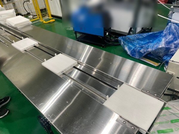 오늘은 다양한 크기의 필터를 비닐포장하기 위해 삼면기를 납품했습니다.