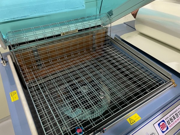 수축필름사이에 제품을 넣어주고 챔버를 꾹~ 닫아주면 작동끝~! 팬이 돌아가면서 열풍에 수축되는 과정만 눈으로 확인하시면됩니다