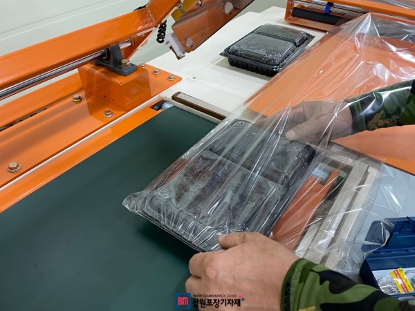 이번에 납품한 기업은 샐러드등의 포장을 위해 용기비닐포장을 하러 수축포장기를 보러 삼원포장기자재 일산본사를 방문하셨는데요