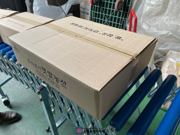 박스에 쌀을 담고 이동 시키면 바로 테이핑이 되고 자바라로 이동시킬수 있으니 미리 박스를 접지 않아도 되고