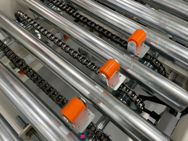 조립된 사이드탭핑기는 투입구에 보조컨베어나 자동컨베어를, 배출구에는 자바라를 연결해서 사용하면 더욱편리합니다