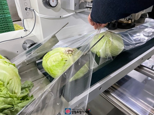 삼면포장기로 야채, 양배추 자동 비닐포장을! 삼면기는 삼원포장(감곡농산)