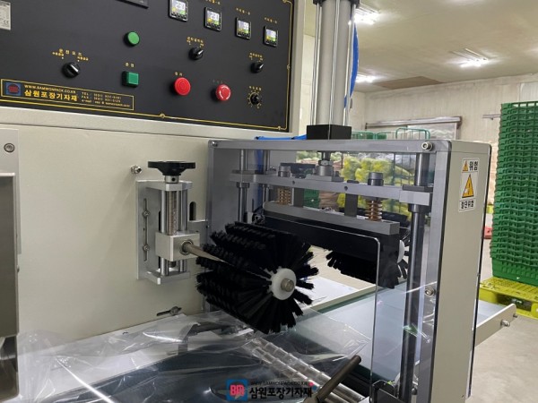 삼면포장기는 양배추, 양상추등을 포장할수 있게 720mm필름까지 걸수 있는 대형으로 제작되었으며, 필름을 하단에 걸수 있는 하단식 삼면포장기입니다
