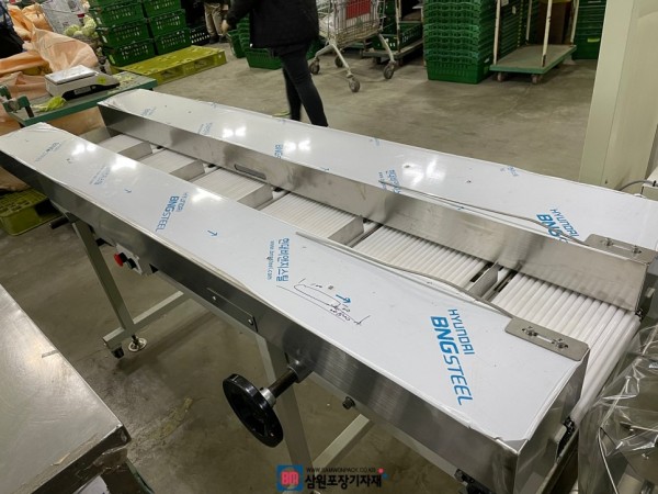 아다치는 벨트방식의 컨베어도 가능하지만 당근 소분포장을 할경우 이동이 용이하도록 봉방식의 벨트로 제작을 해드렸습니다