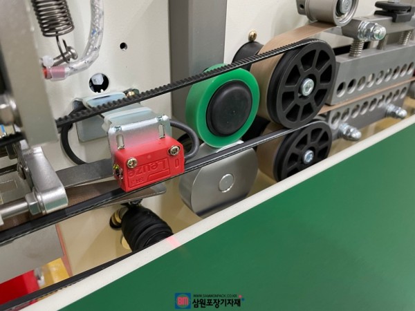 대부분의 밴드실러에는 비닐의 진입을 감지하는 물리적인 센서를 달아서 날인을 하게 되는데 파우치가 길거나, 주름이 있을경우 오작동할 확율이 높은데요, 삼원포장의 밴드실러는 독일 LEUZE 광세서를 달아서 날인 작동오류가 없이 사용을 할수가 있습니다.