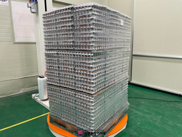 계란판과 파렛트의 하단이 견고하게 움직이 않도록 랩포장을 해서 운송시 안정감을 더 했고