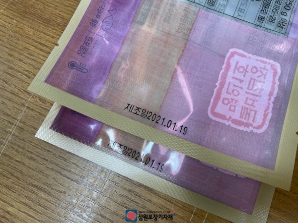 날인은 가장많이 사용되는 리본타입의 먹지로 날인이되며, "제조일자" "유통기한" "까지"등의 글자와 날짜를 날인가능합니다