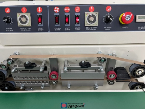 오늘 납품한 밴드실러는 탈기기능(공기를 빼주는)이 있는 실링기로 실링과 동시에 탈기를 하고 날인이 이뤄지는 밴드실러입니다.