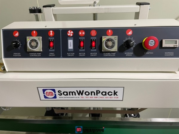 수직형밴드실러, 수직실링기는 실링부와 날인부를 별도로 온오프 할수 있어 필요시 실링, 날인을 별도로 할수 있으며 온도조절, 컨베어속도, 카운터등이 기본으로 장착되어 있습니다
