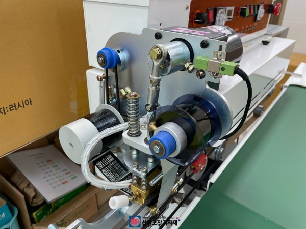 진공밴드실러의 콘트롤러는 실링부의 온도, 컨베어속도, 인자기부분의 온도, 인쇄위치 등을 각각 설정할수 있으며 카운터가 달려있어서 작업량이 자동체크됩니다.