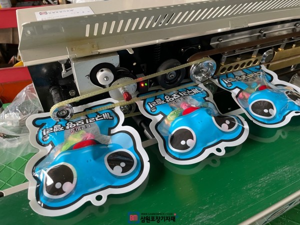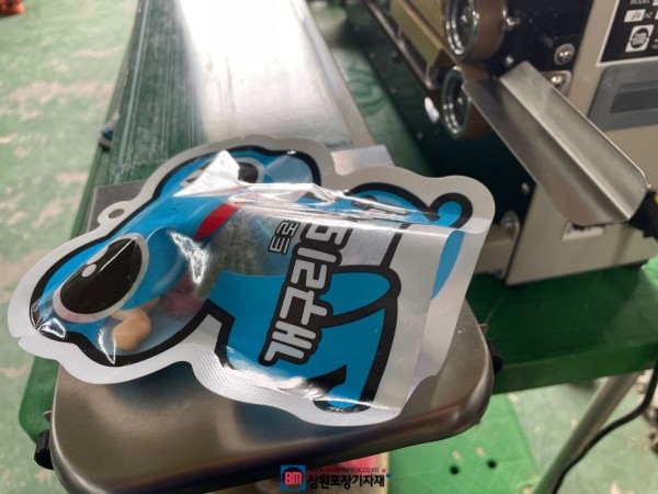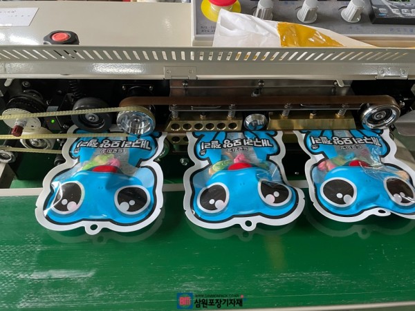 아이들이 좋아하는 젤리네요, 미니밴드실러는 수평형밴드실러로 젤리, 원두, 떡볶이 같은 식품과 마스크포장 같은 다양한 비닐파우치의 실링과 날인에 사용됩니다