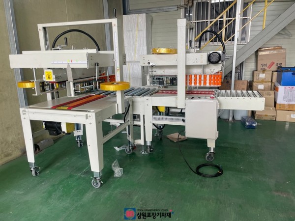 4개의 테이프헤드가 장착되며 박스의 옆면 사이드가 테이핑된후 푸쉬, 나멎 2면이 테이핑되어 배출됩니다.