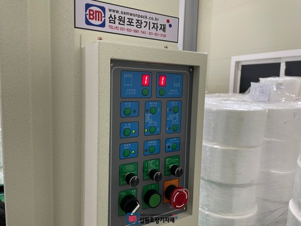 오늘은 원단제품을 랩핑하기 위해서 파워헤드 옵션이 있는 랩핑기를 설치하고 왔습니다
