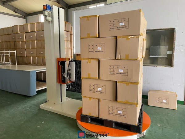 여러개의 박스를 랩으로 포장하면 포장효과뿐아니라 견고하게 파렛트와 고정해주는 효과까지 보실수 있습니다