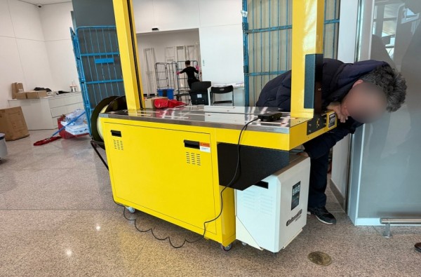 이번에 한진택배 인천공항에 설치된 자동밴딩기는 아치 사이즈 1250*1000 에 15mm 밴드끈 사양으로 제작된 자동밴딩기로