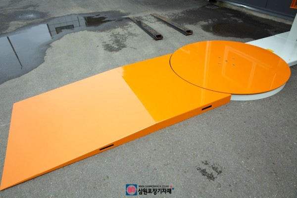 턴테이블에 파렛트를 자키등을 사용해 올릴수 있는 경사판은 회전반경과 높이 딱 맞아서