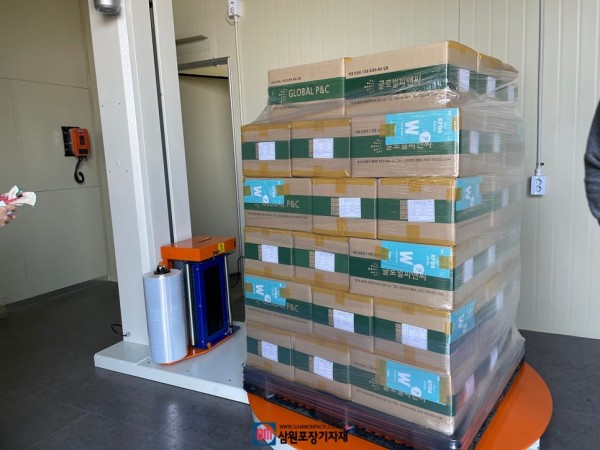 오늘은 여러개의 박스를 랩핑하는 용도로 파워헤드랩핑기를 설치했구요