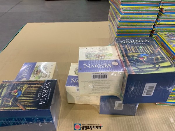수축포장후 비닐에 쌓여 나오는 책들