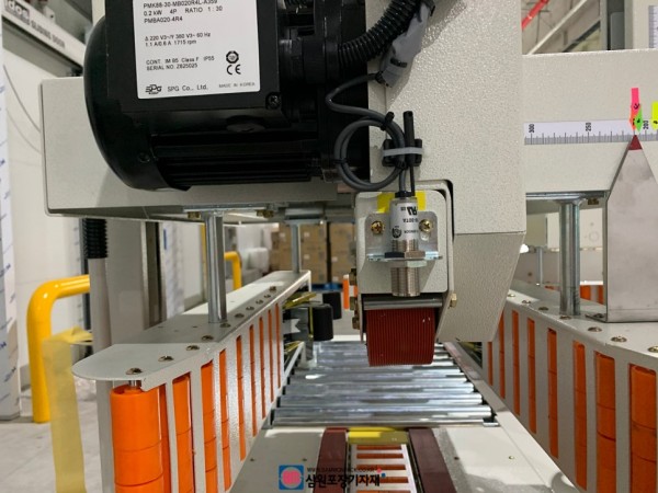 스치로폼박스가 진입하면 양면이 테이핑되고 나머지 두면을 테이핑하기 위해 푸쉬(Push) 작업을 하게 됩니다.