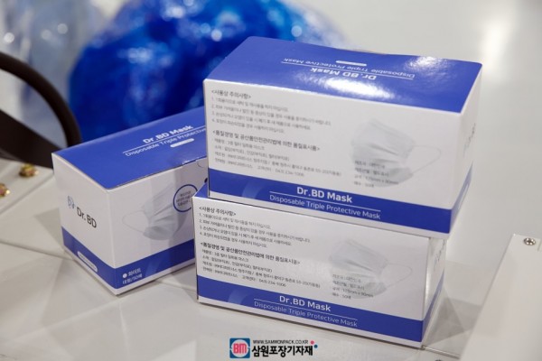 50개가 들어있는 박스단위의 마스크박스포장은 위생적인 유통과 습기등으로부터 보호하기위해