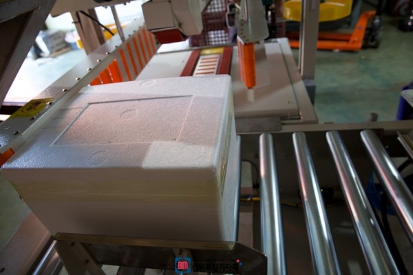 이렇게 스티로폼, 아이스박스 포장에 전문으로 쓰이는 포장기계를 사이드탭핑기라고 하는데요
