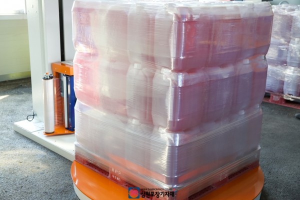 하단부도 역시 제품과 파렛트를 동시에 랩핑해줘서