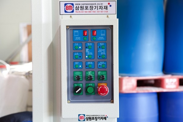 랩의 텐션, 턴테이블의 회전속도, 랩핑헤드의 상,하강 속도를 조절할수 있는 컨트롤패널입니다.
