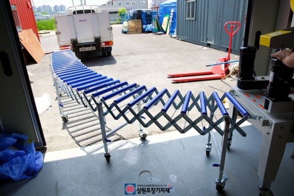 박스포장후 포장된 박스가 화물차에 바로 옮길수 있도록 자바라를 공장 밖 화물차로 연결시켰습니다