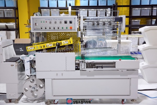 엘실러에서 수축필름으로 제품을 실링해서 자동수축터널로 이동시키면