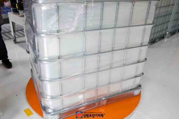 특히 이렇게 하단을 단단하게 랩포장해주기 때문에 파렛트와 제품을 고정해주는 역할을 하는데요
