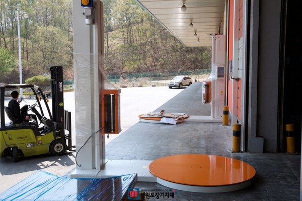수출물량을 포장하기 위해 2대의 랩핑기를 설치해드렸습니다
