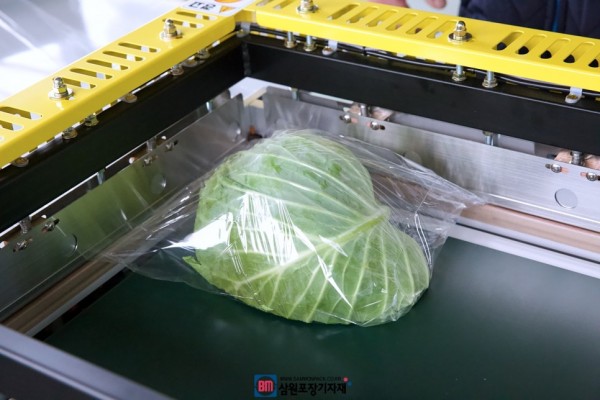 자동수축포장기에 비해 저렴한 가격과 우수한 성능으로 양배추, 야채포장이외에