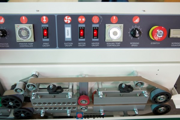 실링온도와 프린터 온도를 개별적으로 조절 및 온오프 할수 있으며 꺼짐타이머 내장, 카운터, 비상정지등의 간단한 구조의 밴드실러입니다