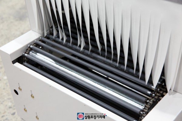 반자동수축포장기는 작업자가 엘실러의 작동만 해주면 컨베어이동과 수축터널의 열수축과정을 자동으로 해주는 수축포장기계로