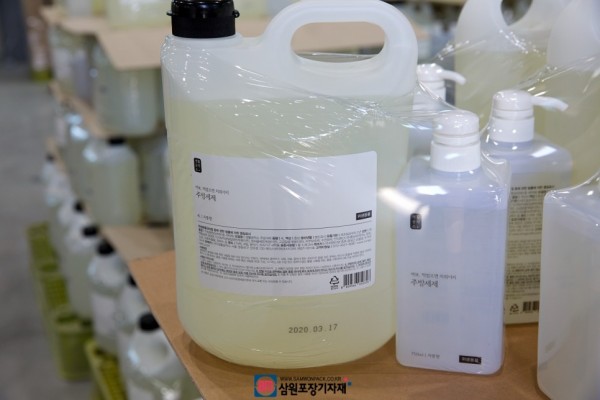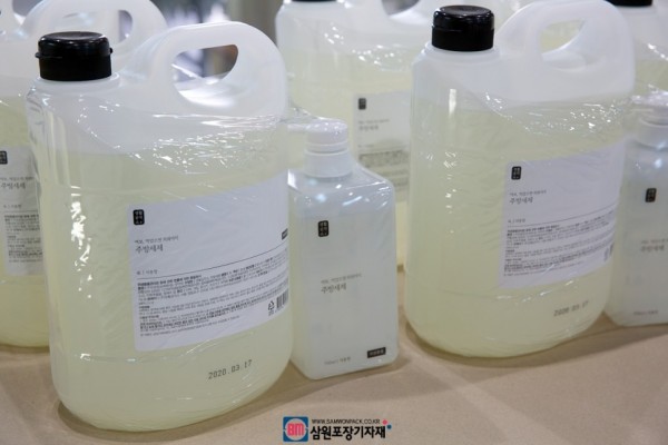 용기에 맞는 수축필름을 씌워서 수축터널에서 작업을 할 예정이며