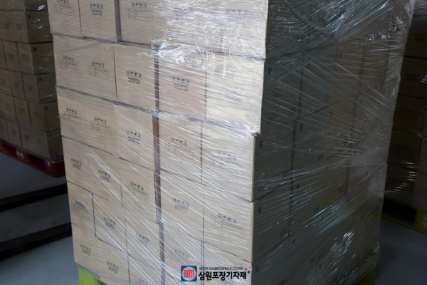 위에가 핸드랩핑으로 포장된 박스이고 아래가 파렛트랩핑기로 랩핑된 박스랍니다.