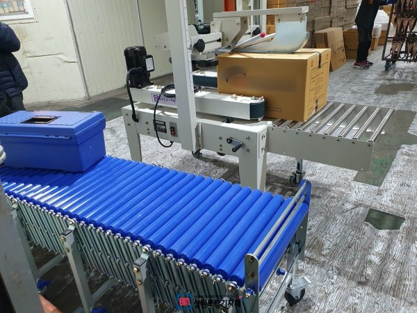 박스의 상하, 테이프로 봉함을 하고 컷팅해주는 작업은 탭핑기로 자동으로 할수가 있는데요
